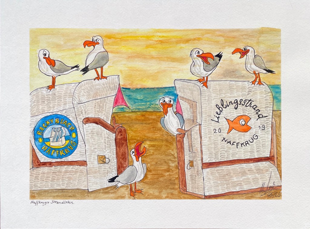 Erlebnisorientierte Besucher sollten an die Küsten gehen, dorthin, wo die Möwen zu Hause sind. So wie hier in Haffkrug. Oftmals mehr Möwen als Menschen, so dass es dort wirkt wie in einem Alfred-Hitchcock-Film – oder, wer es gebildeter mag, der Austragungsort der Vogelrevolution von Aristophanes. Der Konflikt zwischen Weiß und Beige, Möwen und Ausflugsrentnern, scheint dort jedenfalls noch nicht entschieden zu sein.