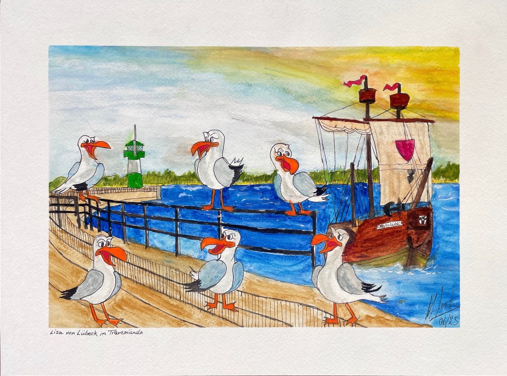 Die Überfischung und Verschmutzung der Meere, durch uns Menschen verursacht, ist die Ursache dafür, dass die Möwen uns immer näher gekommen sind, und ihre ihre Population sinkt. Mit einer Prise Humor jedoch betrachtet könnten wir Menschen jedoch viel von diesen gefiederten Philosophen lernen. Wenn aber die Fischer aus Travemünde heimkehren von Ihrer Fangfahrt, dann sind die Möwen rund um die Kutter ein lohnendes Fotomotiv.