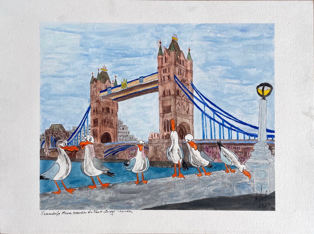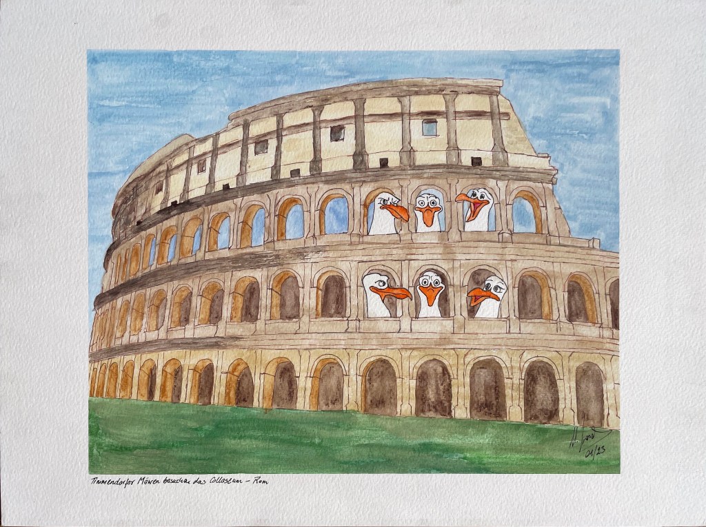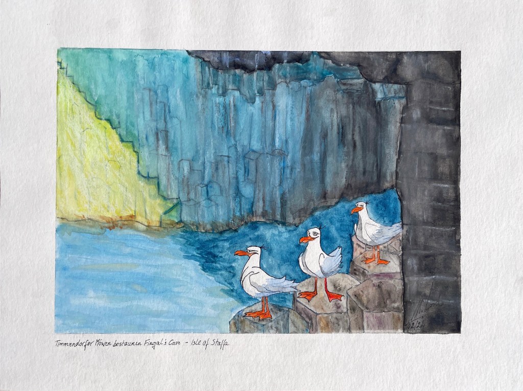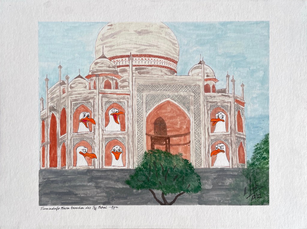 Die Timmendorfer Möwen fühlen sich auch auf dieser Bühne zuhause und besuchen den einen oder anderen Ort auf der Welt. Hier treffen Sie auf ihre Artgenossen in den jeweiligen Regionen und auf die Zeugnisse des menschlichen Seins. Sei es auf Rhodos, in Angkor What, in Fingals Cave oder in Rom, sei es in London, in Paris, am Taj-Mahal, in Venedig oder in New York.